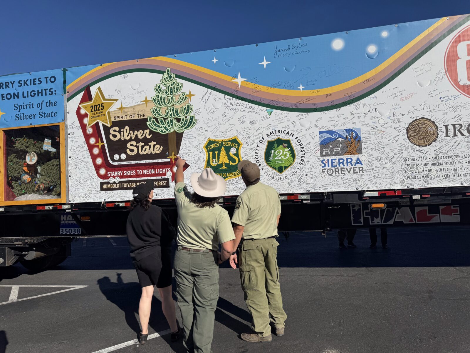 This journey began in early November from the Humboldt-Toiyabe National Forest, with Silver Belle making numerous “whistle-stop” community events across the U.S. before arriving in Washington, D.C., where the tree will be displayed and lit on the West Lawn of the U.S. Capitol.