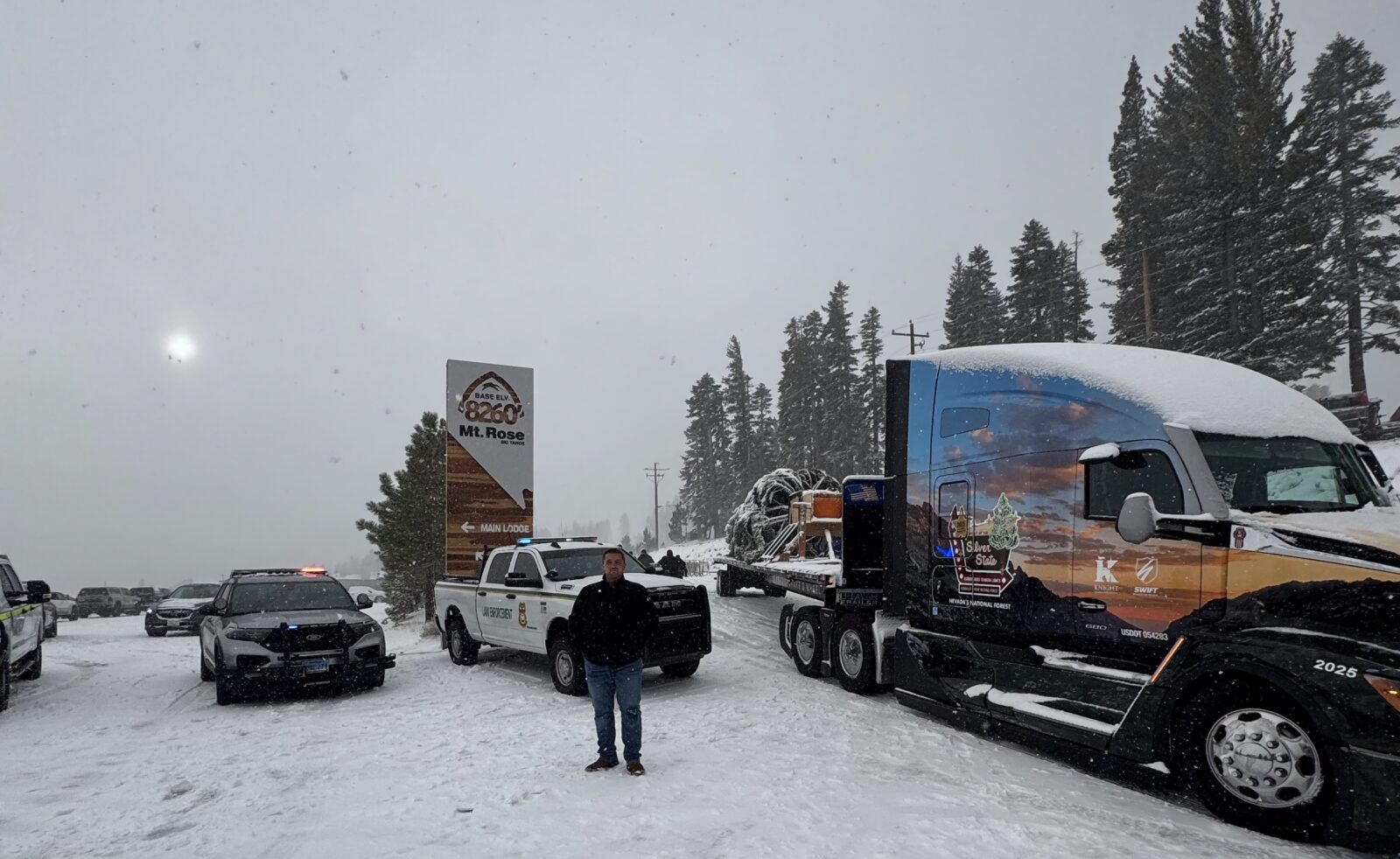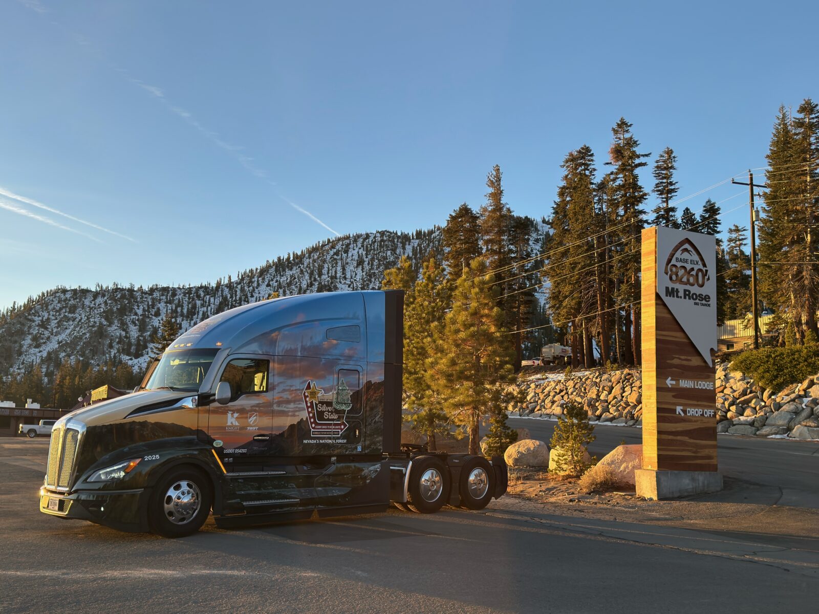 To carry Silver Belle across the country, Knight-Swift is partnering with Kenworth Truck Company, continuing Kenworth’s 12-year tradition of hauling the Capitol Christmas Tree. This year’s specially wrapped Kenworth T680 features a custom design honoring Nevada’s unique landscape and heritage.