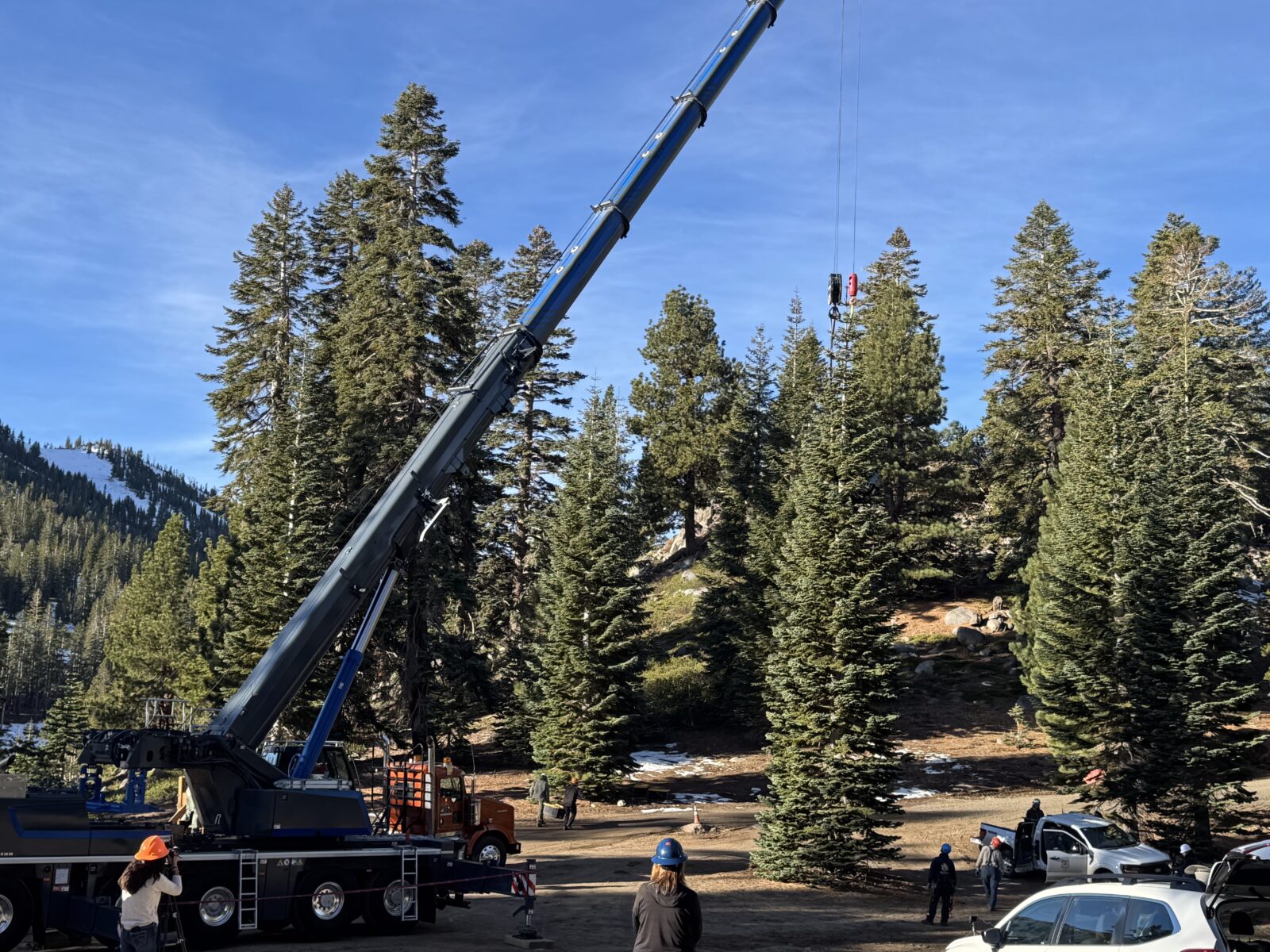 - Safely harvesting and preparing the 53-foot red fir for transport.