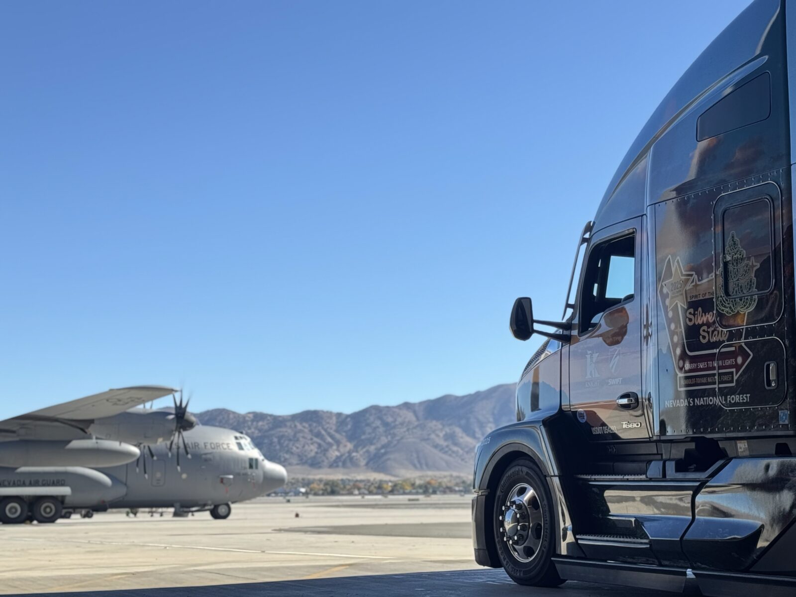 Behind the wheel, one of Knight-Swift’s professional drivers represents the company’s culture of safety, pride, and professionalism. From the driver and shop team to the planners and communicators supporting the tour, this moment reflects the dedication of the entire Knight-Swift family.