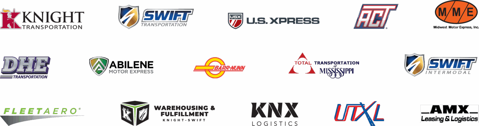 Our comprehensive network of logistics companies provides seamless, efficient and cost-effective solutions tailored to meet your diverse supply chain needs. We are committed to delivering exceptional logistics solutions via Knight-Swift Warehousing & Fulfillment, Knight Logistics, Swift Logistics, USX Logistics, MME Logistics, UTXL and Abilene Logistics.